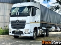 Construction-site filter, Engine version, Euro III, Noise encapsulation in accordance with ECE NGL, Wheel arrangement 6x4, Mercedes PowerShift 3, Transmission oil cooling, Front axle 8.0 t, Front axle, straight version, Rear axle, crown wheel 440, hypoid, 13.0 t, Cable remote control for air suspension, Cab mountings, comfort, steel-sprung, Air suspension, rear axle, Axle load measuring device, Alum. wheels 9.00 x 22.5, Dura-Bright, Alcoa, Water-type secondary retarder, Second tank, 360 l, right, 735 x 700 x 850 mm,alu., Tank 540l Alu, Aufstieg, Frame overhang 750 mm, Wheelbase 3250 mm, Main tank, left, Tank, 290 l, left, 650 x 700 x 750 mm, aluminium, Fifth-wheel coupling ex factory, Fifth wheel coupling height = 185 mm, Fifth wheel coupling, manually lubricated, Fifth wheel coupling, standard, Jost JSK 37C, Weight variant 26.0 t (8.0/10.5/10.5), Vehicle, for left-side traffic, Front underride guard (ECE), aluminium, Tilting sunroof, electric, L-cab StreamSpace, 2.50 m, level floor, L-cab, Cab width 2.50 m, StreamSpace, Cab tilting mechanism, mechanical-hydraulic, Wind deflector over 4 m, movable, side deflectors, Windscreen, tinted, with filter band, Front mirror, heated, Air horn, Locking system, with central locking, Extended central locking, Luxury bed, top, wide, with levelling control, Luxury bed, bottom, Sunblind, side, driver's side, Drawers, under bed, Stowage flaps, above windscreen, Pull-out refrigerator, under bed, Air conditioning system, Driver's suspension seat, standard, Electronic braking system with ABS and ASR, Reversing buzzer, Fog lamps, LED daytime running lamps, LED tail lights, Lane Keeping Assist, Attention Assist, Airbag, driver, Cruise control, Floor variant, flat floor