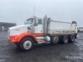 Located in Lane 8 Spot 11, Cat C15 6 Cylinder Diesel Engine, 10570 Engine hrs, Engine Brake, Eaton Fuller RTLO-16918B 18-Speed Manual Transmission, Double Differential Locks, 14320 lb Front Axle, 46000 lb Rears, Meritor RT-46-160P Drive Axles, 4.10:1 Axle Ratio, 71340 lb GVWR, Air Ride Cab, Aluminum Wheels, 11R24.5, Steerable Air Lift Pusher Axle, Chalmers Suspension, 214 in Wheelbase, PTO, General 16 ft Long x 4 ft 6 in High Steel Body, Round Bottom, Manual Roll Tarp, Rear Hydraulics, Pintle Hitch
