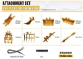 (1) Rake, (1) Ripper, (1) Grapple, (1) Auger w/ 12 in & 16 in Auger Bits, (1) 8 in Narrow Bucket, (1) 24 in Bucket, (1) 32 in Bucket