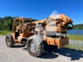 Description: Open canopy telescopic forklift with a 6,000lb. lift capacity and 42’ of reach with a hydraulic tilt carriage and manual coupler. Powered by a Cummins diesel engine. Original factory paint with no damage. No major leaks. 14:00-24 foam filled tires.